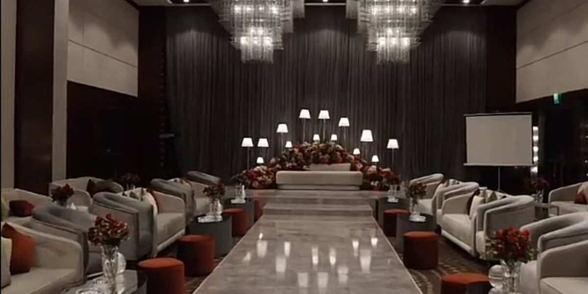- تتميز قاعة الزفاف الرئيسية في الفندق بتصميمها الفريد الذي يدمج بين الحداثة والفخامة العربية.
