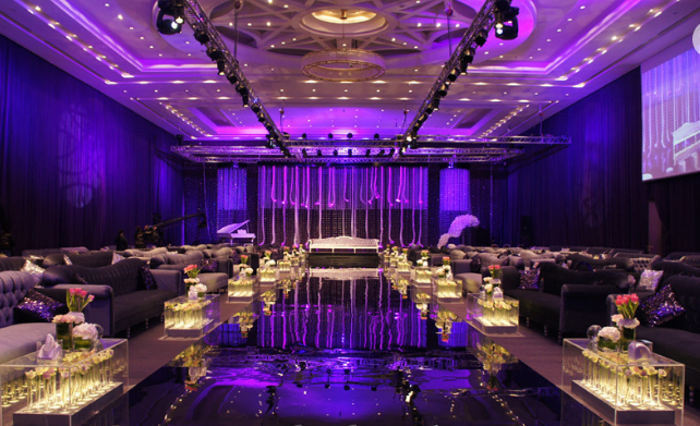 - أجهزة إضاءة حديثة مع مؤثرات الليزر، البخار، وكشاف مخصص للعروس.